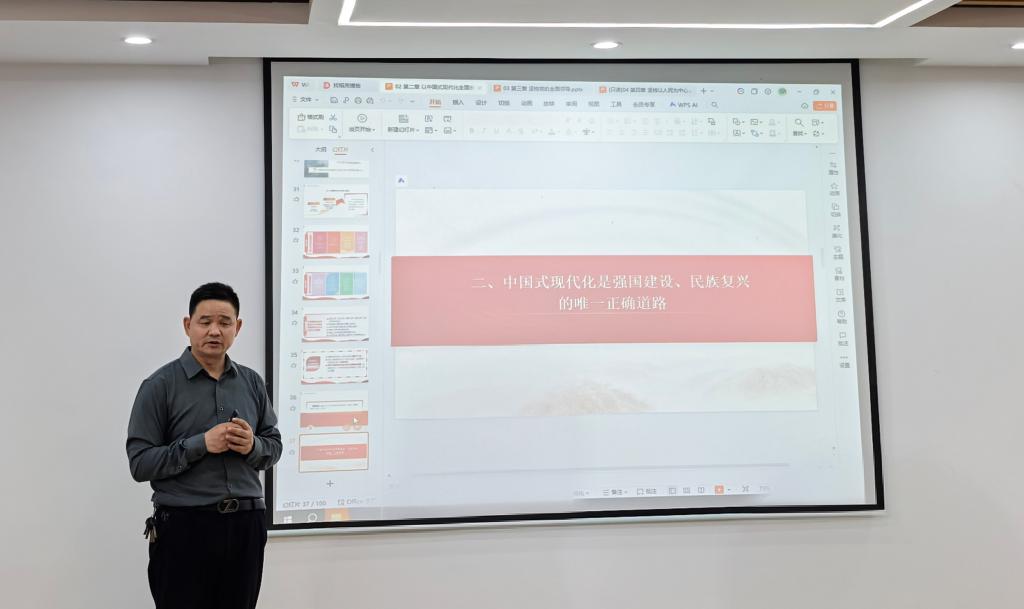 本次磨课以《习近平新时代中国特色社会主义思想概论》教材2-4 章为核心研讨内容,聚焦重点专题展开深度剖析。针对 “以中国式现代化全面推进中华民族伟大复兴” 这一关键专题,张居永教授通过 “中国梦的核心内涵”“中国式现代化与西方现代化的本质区别” 等鲜活案例,层层拆解理论逻辑,帮助教师们厘清教学重难点;在 “坚持党的全面领导” 专题讲解中,他以 “百年中国发展历程对比” 为导入,生动阐释了 “中国特色社会主义最本质的特征是中国共产党领导” 的深刻内涵,为教师们提供了兼具理论性与实践性的教学范例。