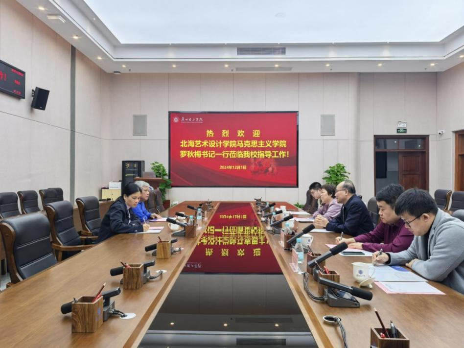 会议伊始,党委书记黄圣诚对北海艺术设计学院的来访表示热烈欢迎并介绍了学校的整体办学情况与党建工作开展情况。