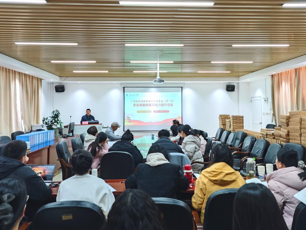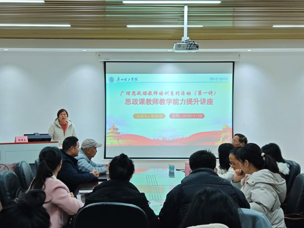 为进一步加强本科教学评建工作,推动思政课教育教学内涵式发展与创新,提升思政课教师的教学能力,不断推进课程改革和创新,提升我校思政课教师教学能力,马克思主义学院开展“广理思政课教师培训系列活动”,1月10日上午在综合楼503举办第一讲:思政课教师教学能力提升专题讲座。讲座邀请广东药科大学马克思主义学院党总支书记/常务副院长张居永教授、博士主讲,马克思主义学院院长袁毓玲主持,马克思主义学院教师参加。