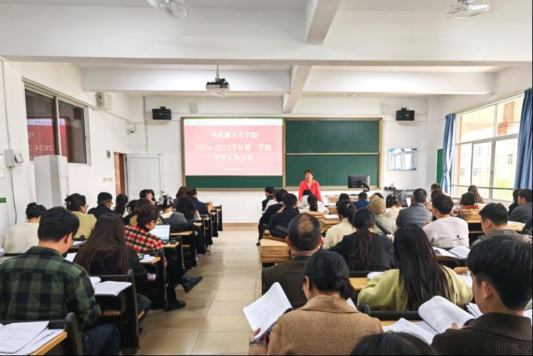 2月21日下午,马克思主义学院在7-502会议室召开全院工作会议,安排部署新学期工作。会议由学院院长袁毓玲主持,学院领导班子成员及全体教职工参会。