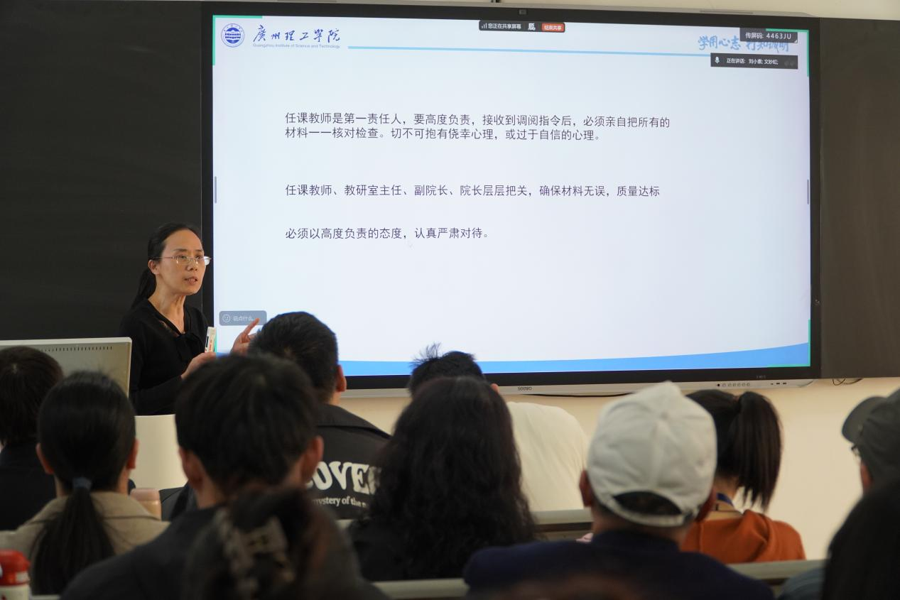 袁毓玲院长做预评估工作动员部署,明确本次会议核心任务是为学校下周的预评估工作做好全方位准备。她强调,预评估是检验学院教学工作质量、规范教学管理的关键环节,教案准备、资料整理等基础工作更是重中之重。针对前期演练中暴露的问题,袁院长提出明确整改要求,一是全体教师需按要求高质量整理下周授课教案,在规定时间内完成提交;二是持续加强磨课环节,打磨教学细节、提升教学质量,同时要求全体教师做好自我检查,确保各项准备工作贴合学校预评估标准。