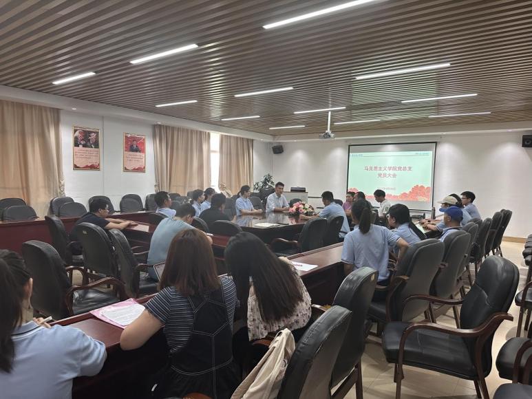 6月30日,马克思主义学院党总支在综合楼503召开全院党员大会,会议由学院党总支副书记蔡煜浩主持,全体党员参加。