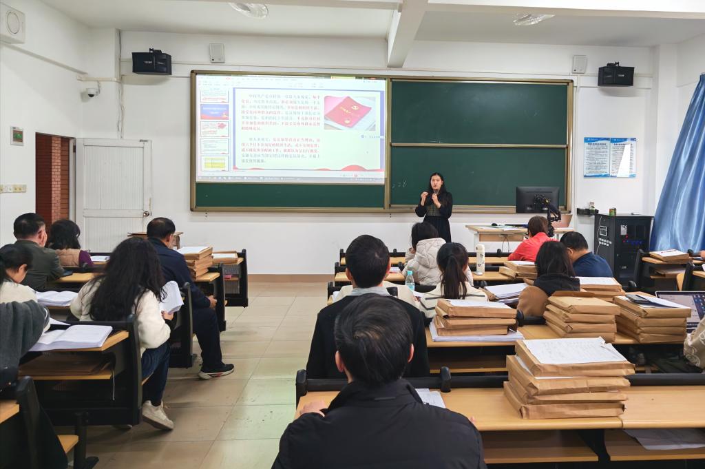 2月21日,马克思主义学院党总支在综合楼7-502课室召开全体党员大会。会议由党总支副书记郭芸主持,全体党员参会。