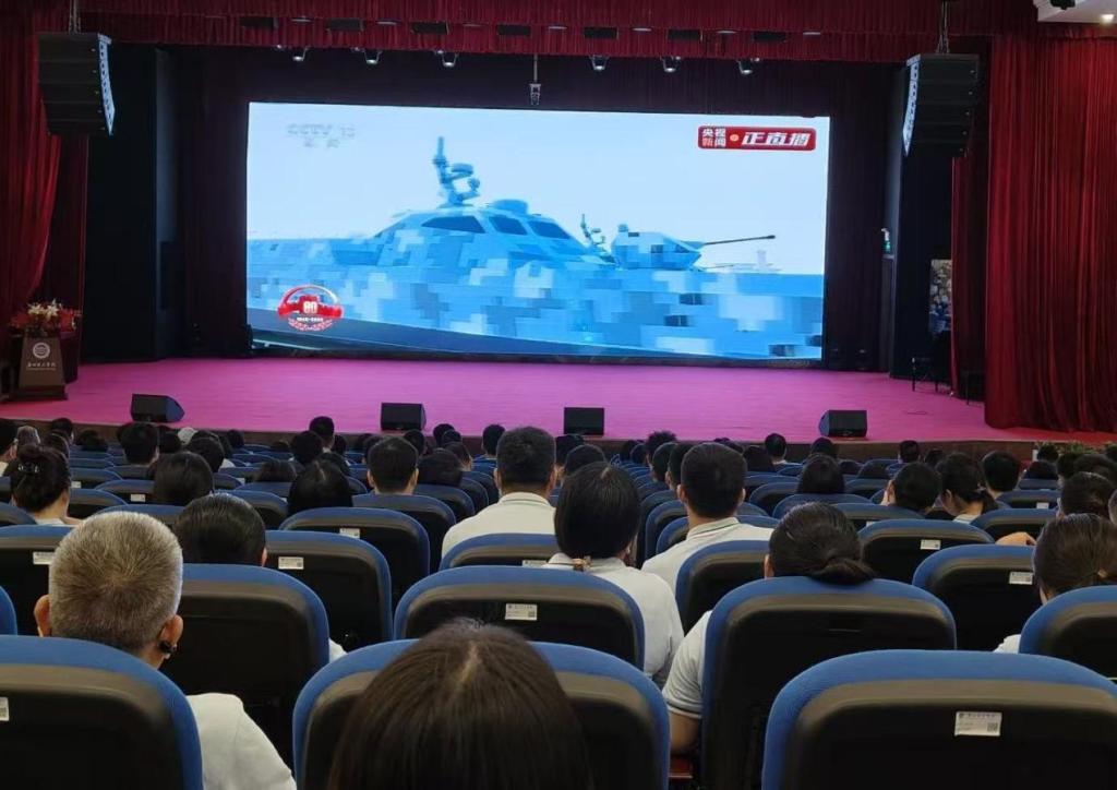 会场上,教师们着装整齐,精神昂扬,目光紧紧聚焦屏幕。当国歌声响起,全体起立,齐声高唱,歌声激昂有力,震撼人心。当徒步方队以铿锵步伐踏过天安门广场、装备方队展现大国重器风采、空中梯队划出壮丽航迹时,大家脸上满是自豪与振奋。教师们表示:要始终坚持为党育人、为国育才的初心使命,以伟大抗战精神为指引,努力培养担当民族复兴大任的时代新人。