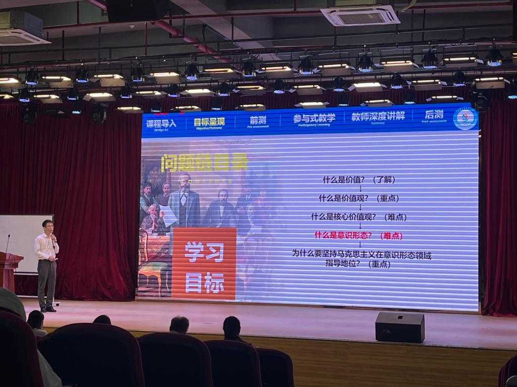 决赛中,张文老师以《马克思主义基本原理》第二章第二节“真理与价值”的内容为切入点,从价值、价值观、核心价值观、意识形态、坚持马克思主义在意识形态领域指导地位的知识点层层递进展开教学,娓娓道来,最终获得三等奖的好成绩。