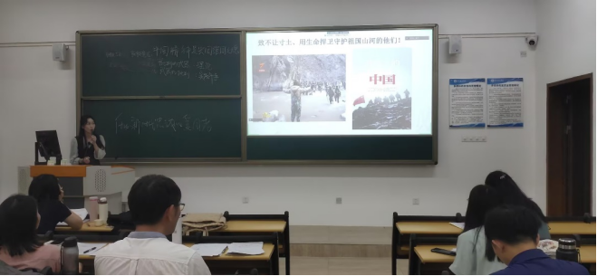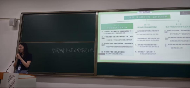 其中,闫舒蕾老师和喻颖老师分别以“人无精神不立,国无精神不强”和“新时代爱国主义”为主题进行课堂内容展示。两位老师精神饱满,能在课堂中有效利用多媒体,运用灵活多样教学方法,图文并茂地展现教学内容,教学目标明确,教学环节设计科学、合理,能给予学生思考、联想、创新的启迪,带动学生有效融入课堂学习。
